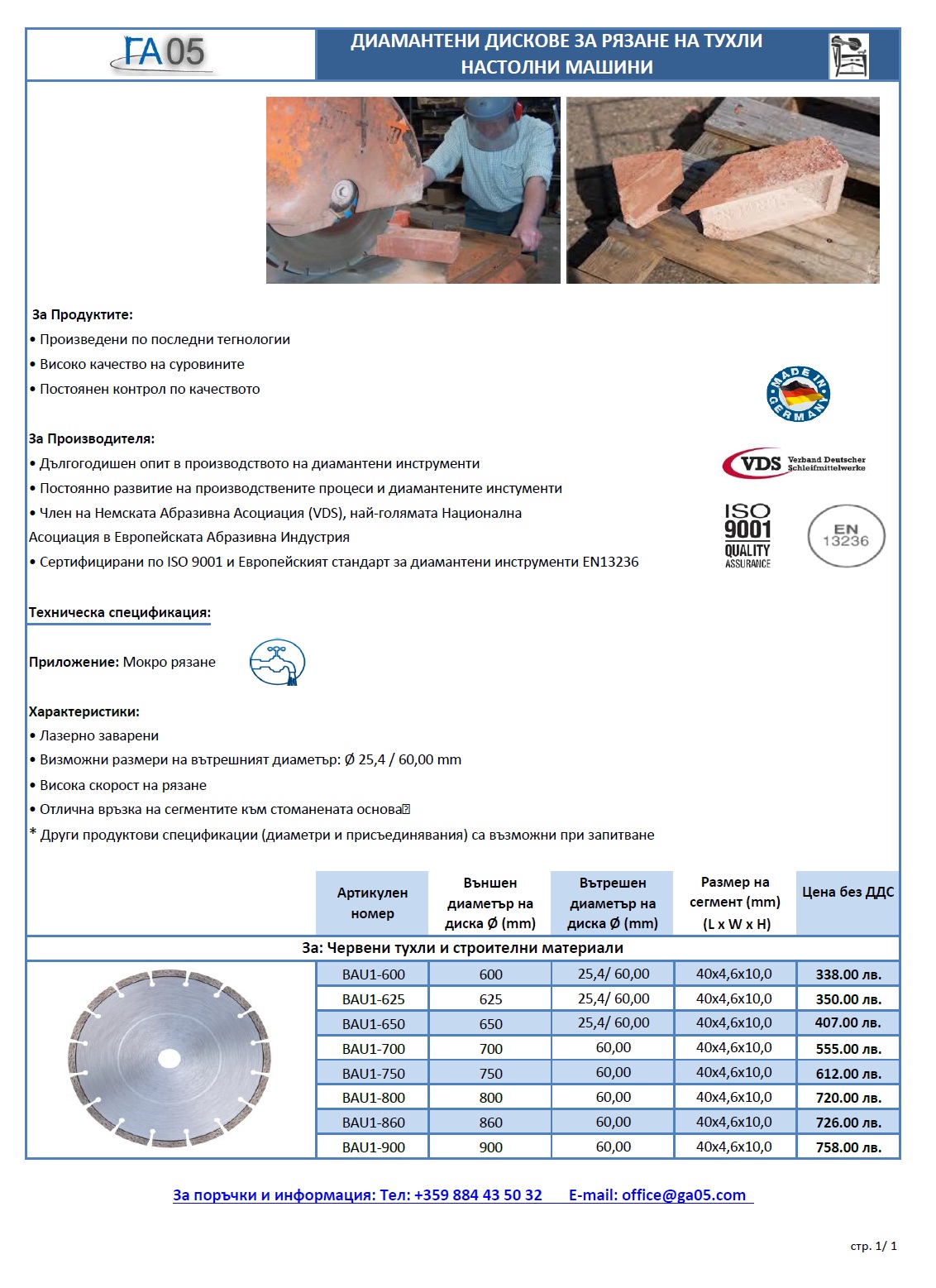 Нашето предложение за диамантен диск за рязане на тухли и строителни материали за Настолни Машини: