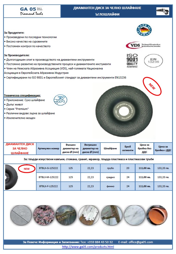 НОВ ДИАМАНТЕН ДИСК ЗА ЧЕЛНО ШЛАЙФАНЕ
