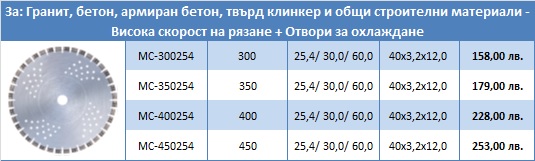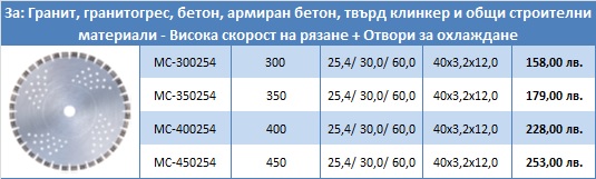 1. Диамантен диск MC-Turbo за рязане на гранит, гранитогрес, бетон, армиран бетон, твърд клинкер и общи строителни материали – Висока скорост на рязане + Отвори за охлаждане