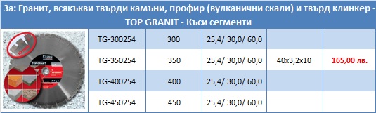 3. НОВ Диамантен диск Top Grаnite за рязане на гранит, всякaкви твърди камъни, профир (вулканични скали) и твърд клинкер – TOP GRANIT – Къси сегменти