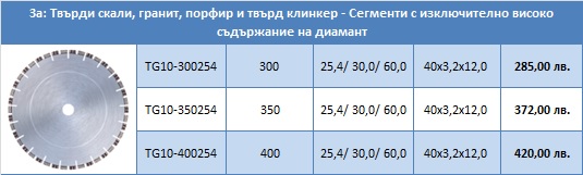 2. Диамантен диск TG 10 за рязане на твърди скали, гранит, порфир и твърд клинкер – Сегменти с изключително високо съдържание на диамант